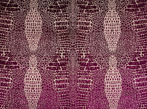 A fabric with an intense and contemporary appeal, Alligatore stands out for its organic pattern reminiscent of reptile skin, made vibrant by the alternation of velvet and a shimmering background. The irregular geometries and central symmetry create a dynamic and iridescent effect, enhancing the velvet’s textured appearance with a modern twist.