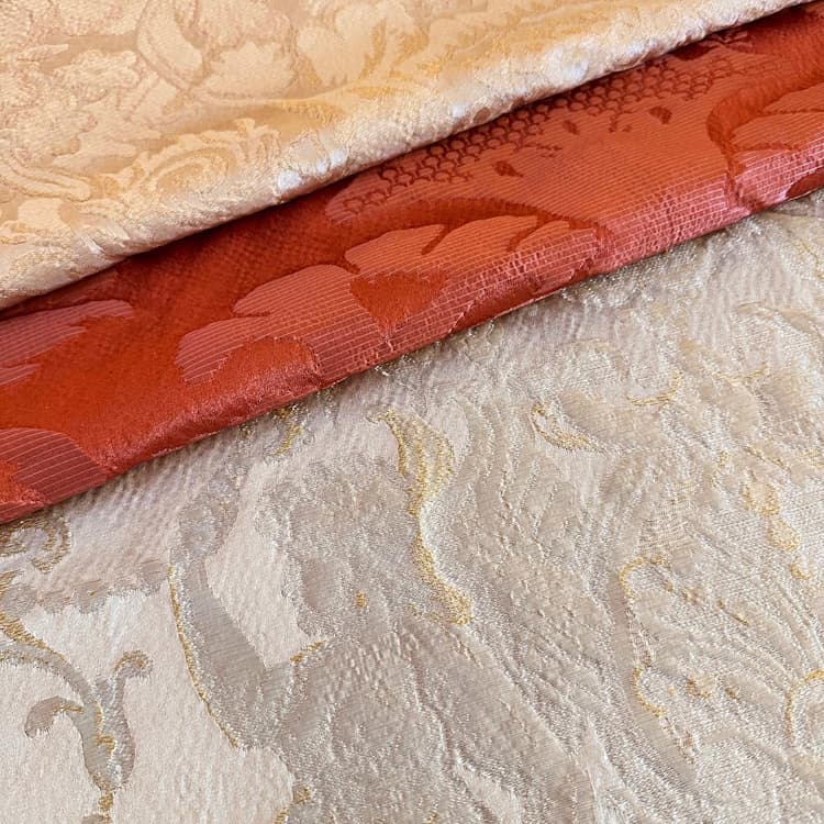 Solitamente, il damasco è monocromo, ma se ne possono trovare anche bicolore grazie all’utilizzo di  colori diversi  per ordito e trama.